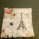 When a project becomes ‘several’ projects it’s time to look for some money saving tips!! Â Erin started out wanting to learn how to put a zipper in and making a Wet Bag. Â She went from ‘frogs to Paris’ and has had a great time. Â She used PUL fabric (Polyurethane Laminate) which is waterproof and you will find it in the diaper section of JoAnn’s, to line her bags. Â The first 2 bags are waterproof and the rest are zipper quilted pouches. Â She even started adding loops to her pouches.